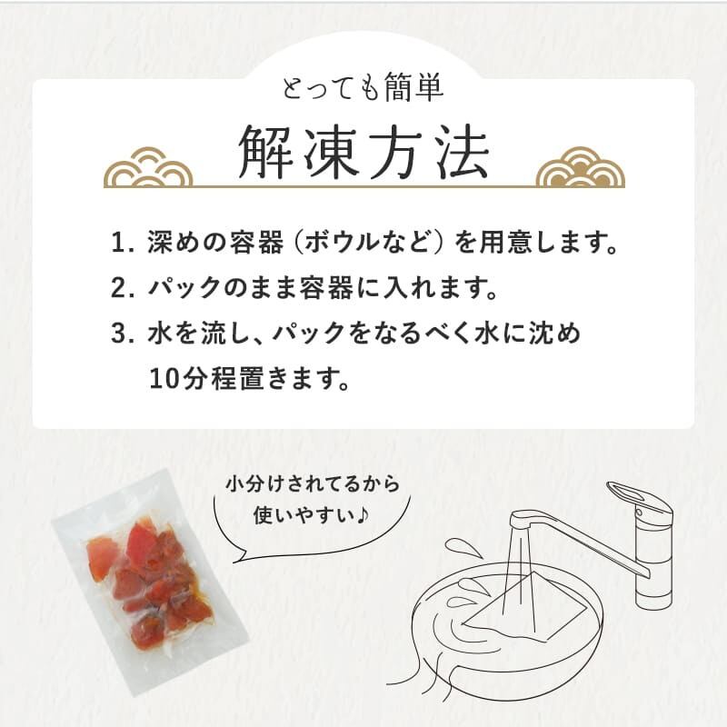 原材料:めばちまぐろ(太平洋)、醤油(大豆:遺伝子組み換えの混入を防ぐため分別)、砂糖、かつお節だし、発酵調味料